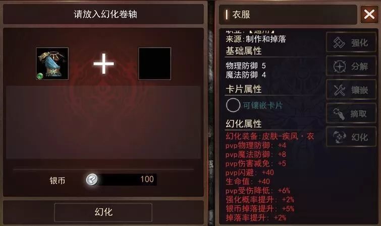 幻化系统不仅能改变外观,最重要的是还能增加属性。所以在使用幻化皮肤后,我们就能变得又帅又厉害了!