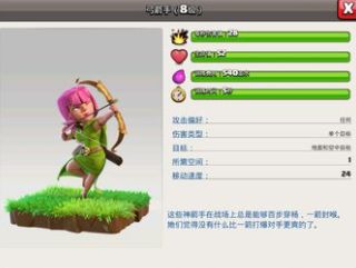 弓箭手在10本以前可以说是所有玩家的主力兵种,10本以后逐渐被玩家抛弃,究其原因是身板脆,伤害低,伤害低到连收尾的工作都胜任不了。但是最近弓箭手突然火了起来,成为了守家援军中的常客,大批量的弓箭手可以加大引援杀援的难度,可以说是雷龙的克星