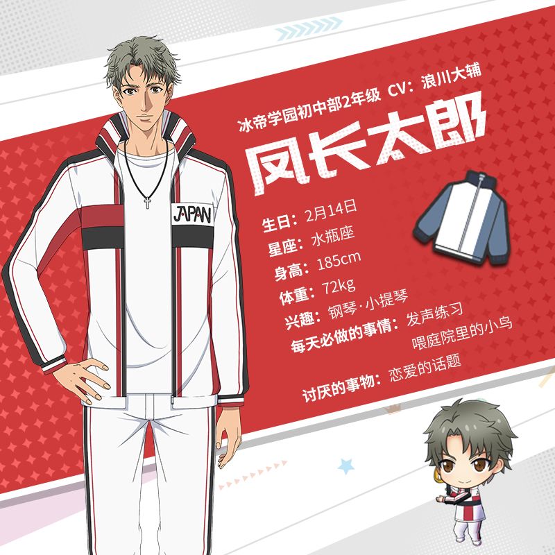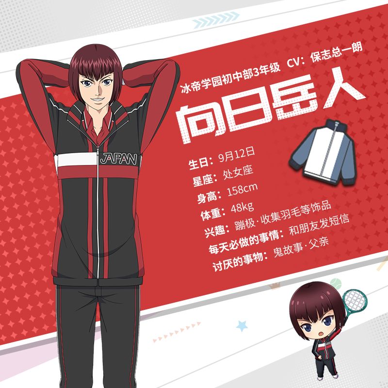 冰帝网球部部员,有着强烈的上进心,是肩负着下一代冰帝的年轻勇士,使用融合了古武术的独特架势,是对胜利和美学的追求。