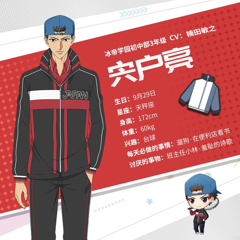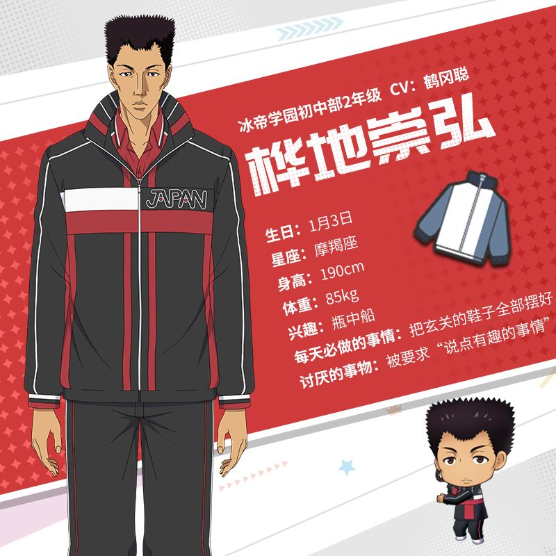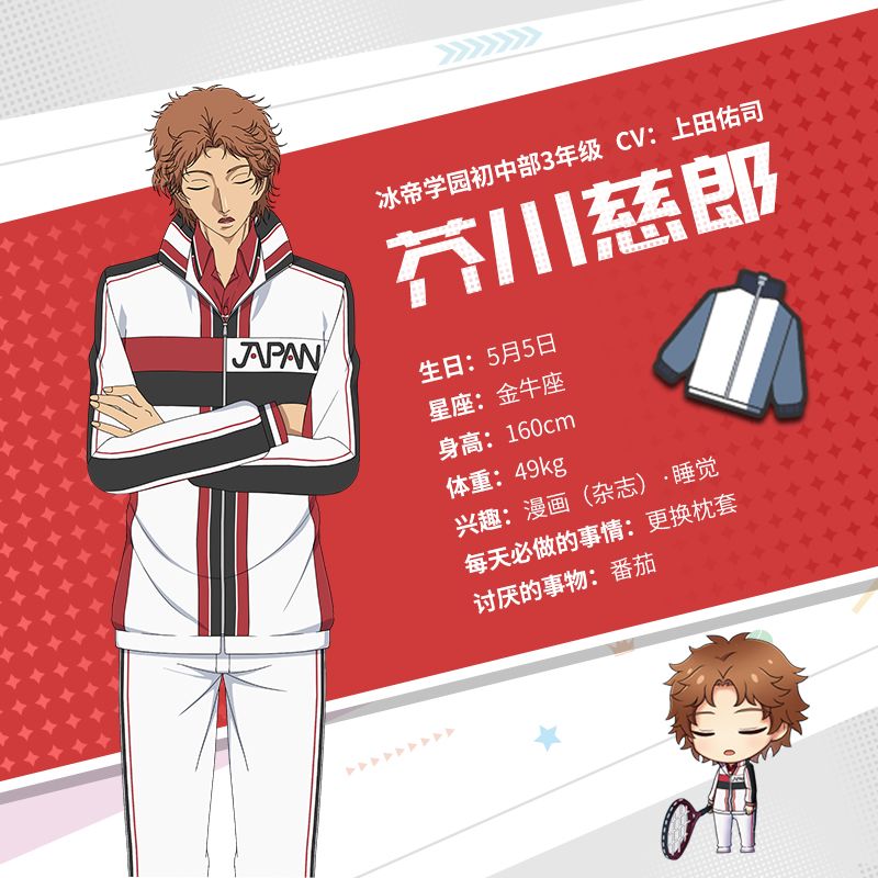 冰帝网球部部员,拥有无论在什么逆境都会努力跨越的顽强精神,在惨败给桔后依然靠着顽强的精神回归了一队。