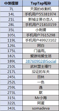 以上中奖玩家请在名单公布后三天内(2019.11.1当天24时之前,过期奖励作废)加入QQ官方群685883464联系客服QQ号:1753919912 (昵称:)提交您的中奖楼层、TapTap昵称和个人主页截图进行登记。