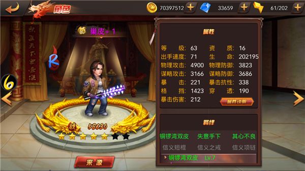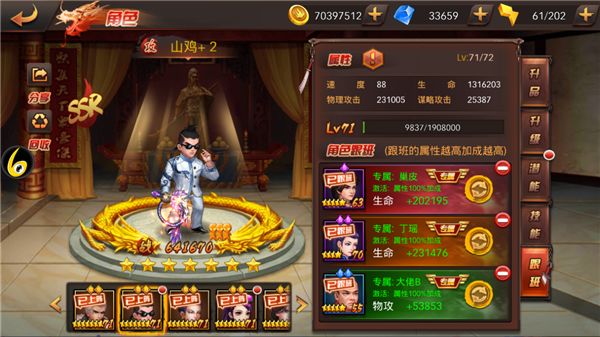 下面以主角和山鸡的跟班作为例子说明一下跟班的培养,毕竟这两个角色是人手必备的。主角三星的专属跟班是飞鸿,获取容易,给主角增加的属性是生命