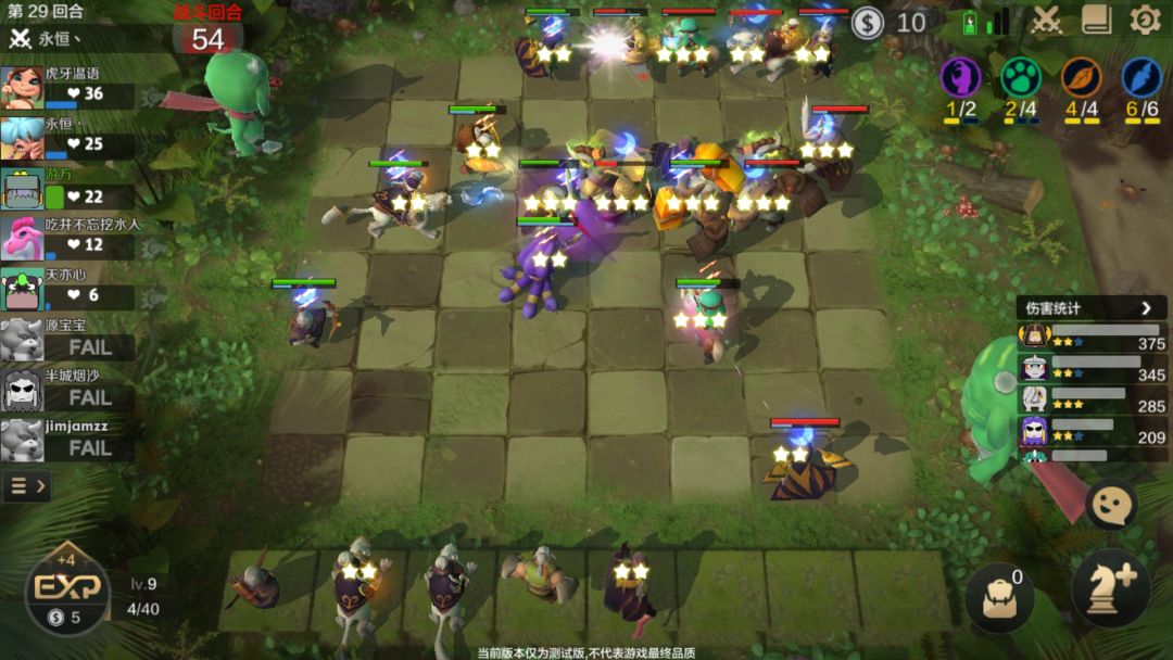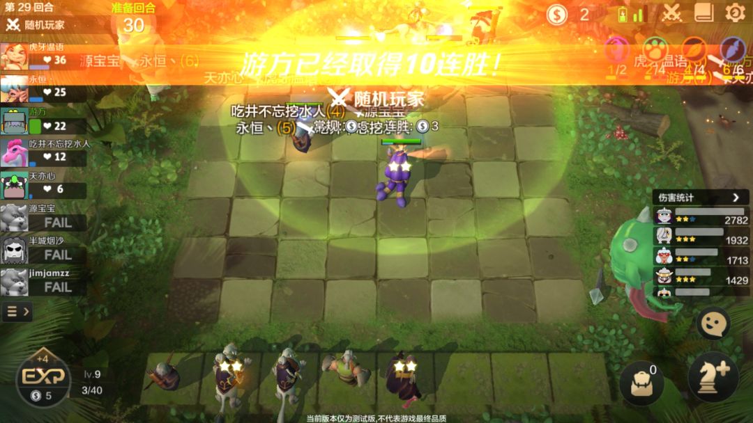 29回合了,现在只剩5个人,从我们17回合不计代价的提升阵容开始到现在已经10连胜了。不客气的说要不是开始的空城也没有如此经济来支持我这样的爆发。