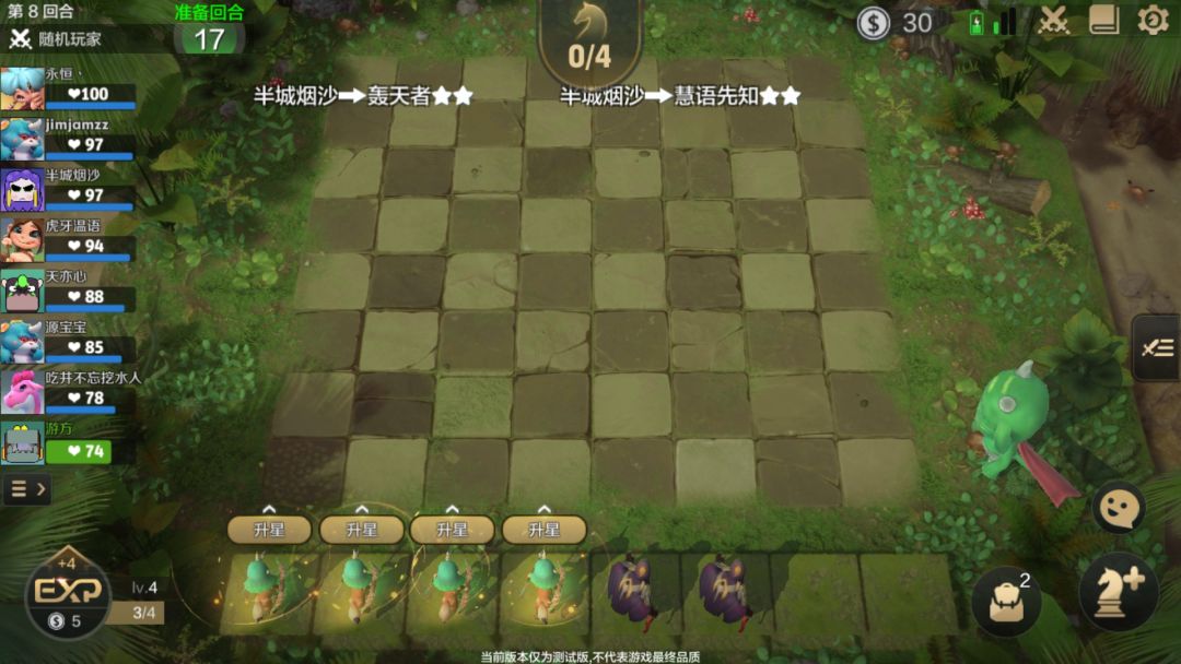 那我们可以尝试在一回合内大量买进棋子放到场上,刷新再买进,再刷新再买进……看哪种套路的最多留哪种其它的在回合结束前卖掉。