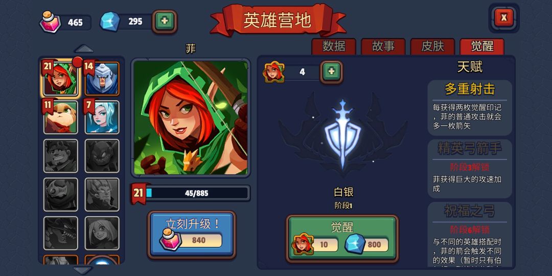 为什么菲的天赋没有提现呢,不是说每获得两枚印记多一支箭么,为什么4枚还是只有2支箭。