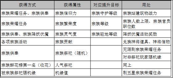 组长、副族长可以进行官职任免,族长、副族长、圣子、圣女可以修改宗族宣言,族长、副族长、圣子、圣女、护法、长老有清理出族和建设相关的权限,族长、副族长、圣子、圣女、护法、长老可以邀请他人进入宗族,副族长、圣子、圣女可被让位,族长连续7天不上线可被副族长/圣子/圣女篡位,族长连续14天不上线可被护法/长老篡位。