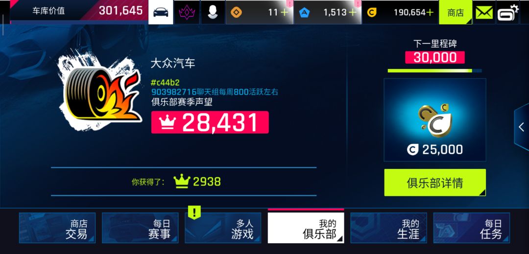 每日1000贡献左右,考虑到学生党,工作日可调整为一周800左右贡献,长期在线的优先考虑,目前排名560上下不稳定,可先加群我会亲子拉你,也可以自己搜索俱乐部id,萌新也收只要保证活跃,不懂的都可以问。