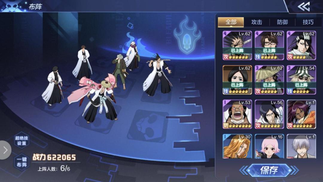 超绝给予涅茧利和京乐春水,剑八站前排开场顶住伤害开大实现一人无敌7.5秒,喜助站中排中间被动给予全场鬼道攻击最高的角色提升额外的8%-15%攻击(6星还有额外8%伤害率)、并且普通技能增加附近角色20%鬼道伤害,中排左面是涅茧利虽然涅茧利是后排输出但是在这个队伍里面千万不要让他在后面,避免转神体禁锢,因为我们要利用涅茧利的刃禅让他实现第一个开启超绝打出暴击30%这个10秒BUFF让春水来达到真正意义上的秒杀。