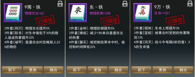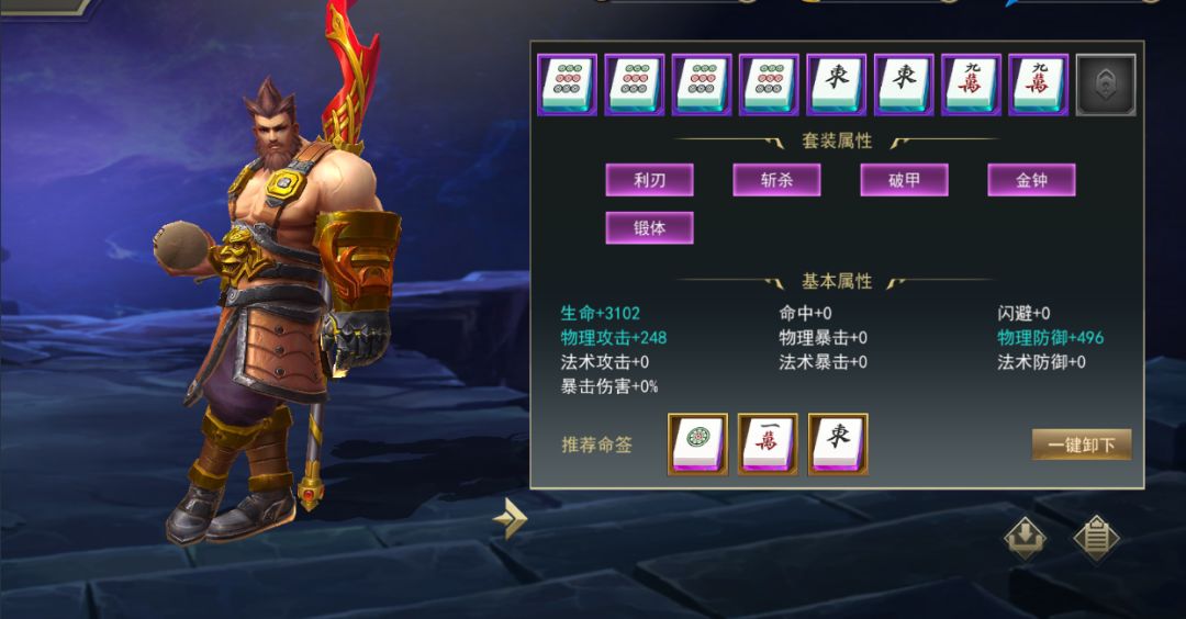 由此,张飞的3个技能就形成一个更贴近经典的传承之意。在新御龙中,武将也可以通过命签(即为麻将)、神兵和坐骑来形成不同的属性套路,尤其是命签,其丰富的组合套装特性更是值得研究。那我们又给翼德兄配置了何种套装命签呢?