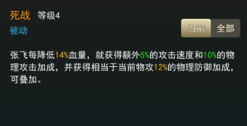 张飞的3技能“死战”是个被动技能: