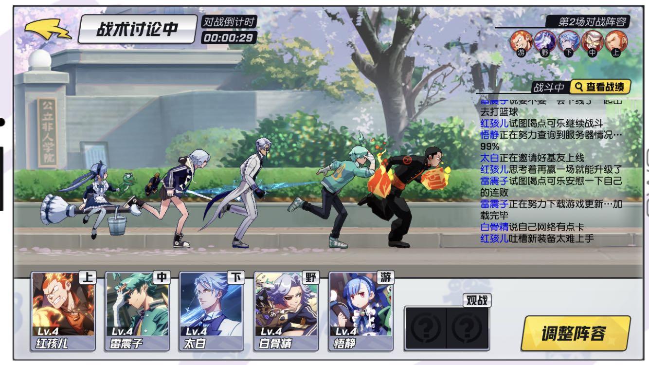 此次全平台公测,《非人学园》还特别加入了“休咸学园”放置玩法,休闲放松乐趣无穷,并能赚取额外的硬币。达到一定等级与明星数量后,休咸学园功能可以通过主城界面左侧的小手机按钮进入。同学们需要为战场上的上、中、下、野、游5个位置安排英雄,然后派遣他们出战,就可以围观他们的日常啦!