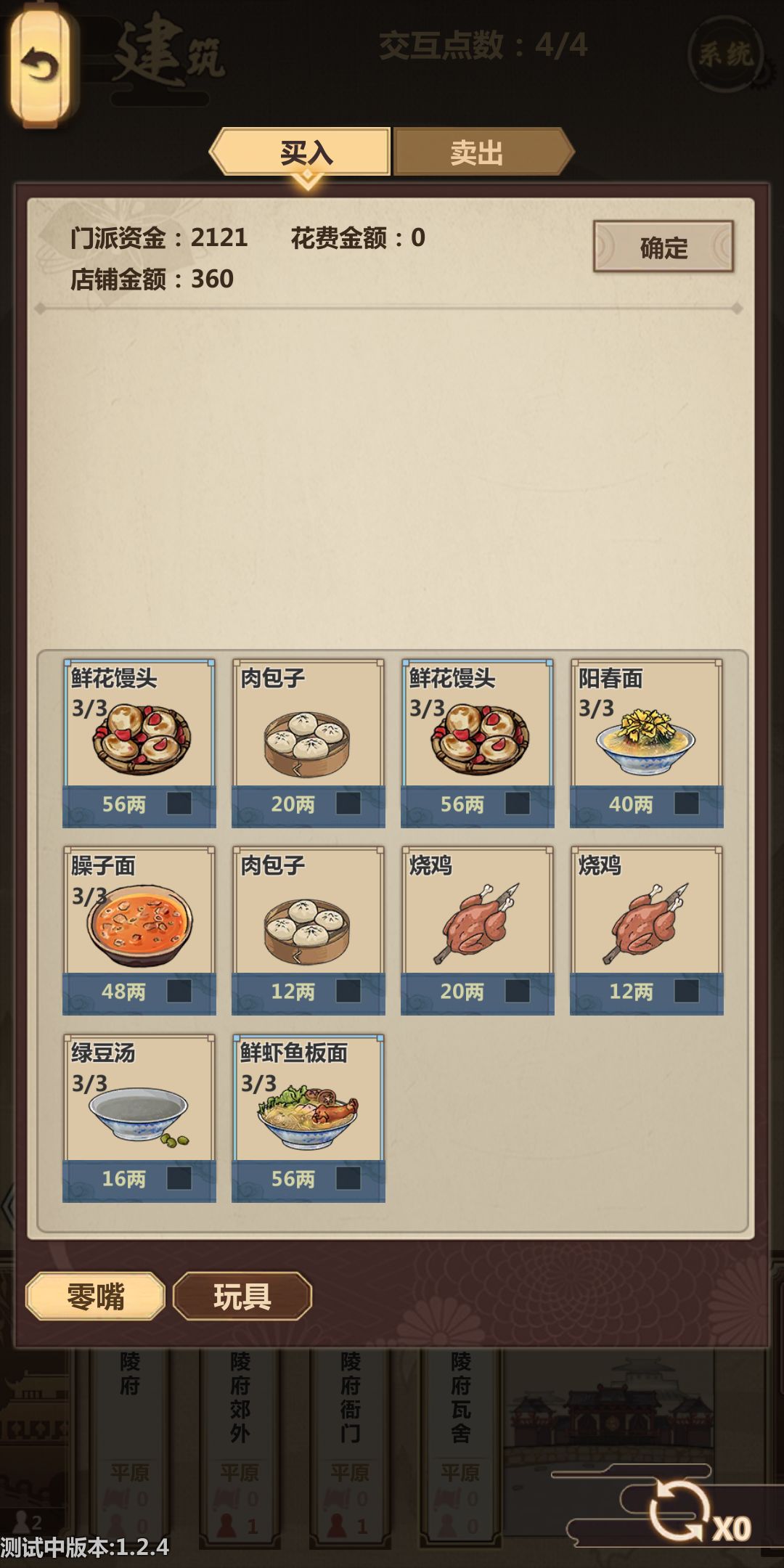 然后呢就是被迫收租,请工匠队,开地图,1.2.4版本馒头有饱食属性,不建议sl