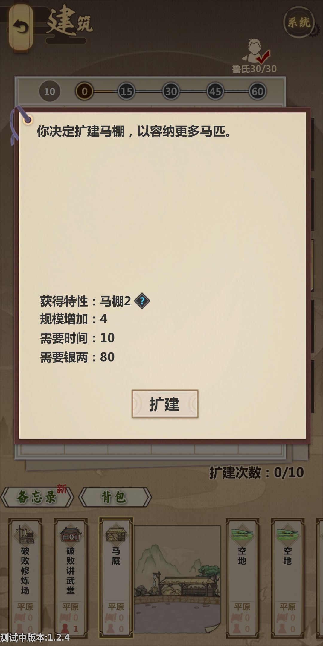 (1.2.4此版本更新,第一回收租变少,开四个图时候还可以捞油水)掏多少看你心情,不影响大局。这时候重点来了,帮派第一手扩建马棚,这样第一次跑商就是三匹马,(刚从新手村能带大量银子出来的,肯定都不是什么好鸟,大家都懂,但是刚到门派是不刷黑市的,马的用途主要是撑恢复和上限)什么?没有三匹马?往下看。