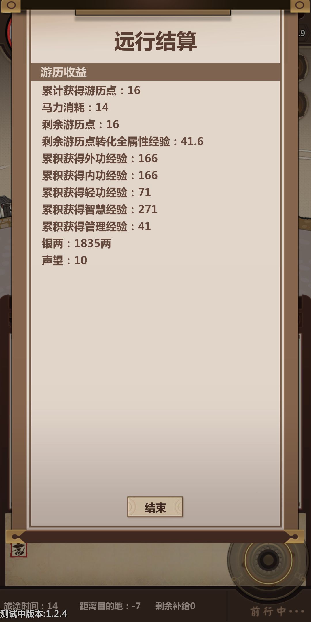 因为玩的极限武术流所以收益有所下降,但是我把新手村商队的钱搬空了,把没用的卖掉