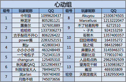 1. 32位玩家(其实没有辣么多人,部分玩家在上一轮就弃权了_(:зゝ∠)_)将会被随机分配并进行淘汰赛,心动组与非心动组分别进行比赛,具体对战名单已公布,可见后文