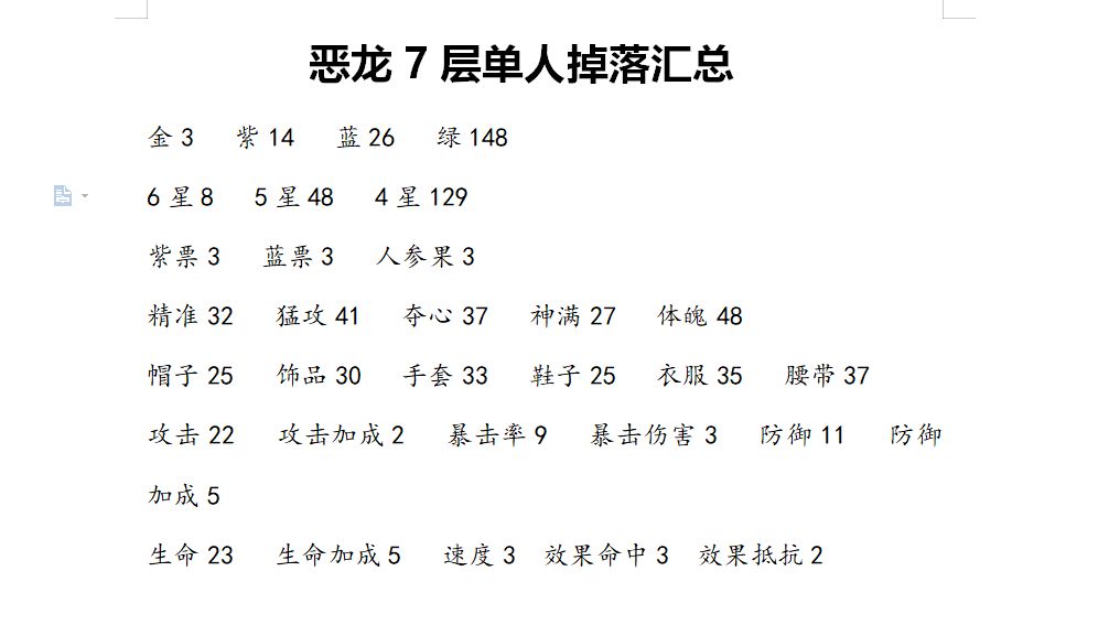 关于恶龙7层装备掉落情况分析