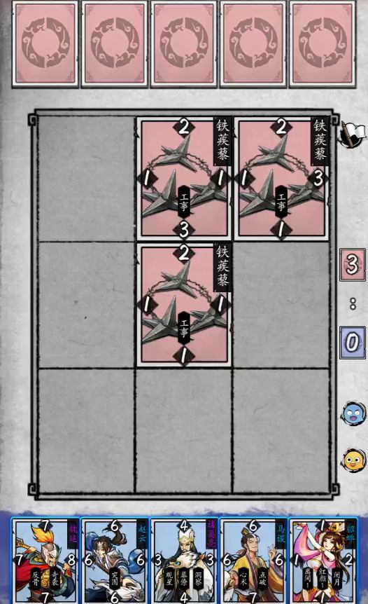 作为三国时期认知度最高的谋士,4星的诸葛亮那必须是具有着非常优秀的技能的。从一级开始,第一技能【占星】技能就能查看对方手牌,做到摸清敌人套路,实现料敌如神。二级时增加的第二技能【幕僚】,给了诸葛亮一次“保命”机会,使得在有己方工事的情况下,先手入场的诸葛亮能够抵挡一次翻面。升至三级时,诸葛亮将开启第三技能【洞悉】,不论地方是什么技能,放置在拥有【洞悉】技能的诸葛亮身边,其技能都将失效。在接下来的升级中,【幕僚】【洞悉】技能的升级,也使得这些技能不再是一次性消耗技能,实用性大幅提升。