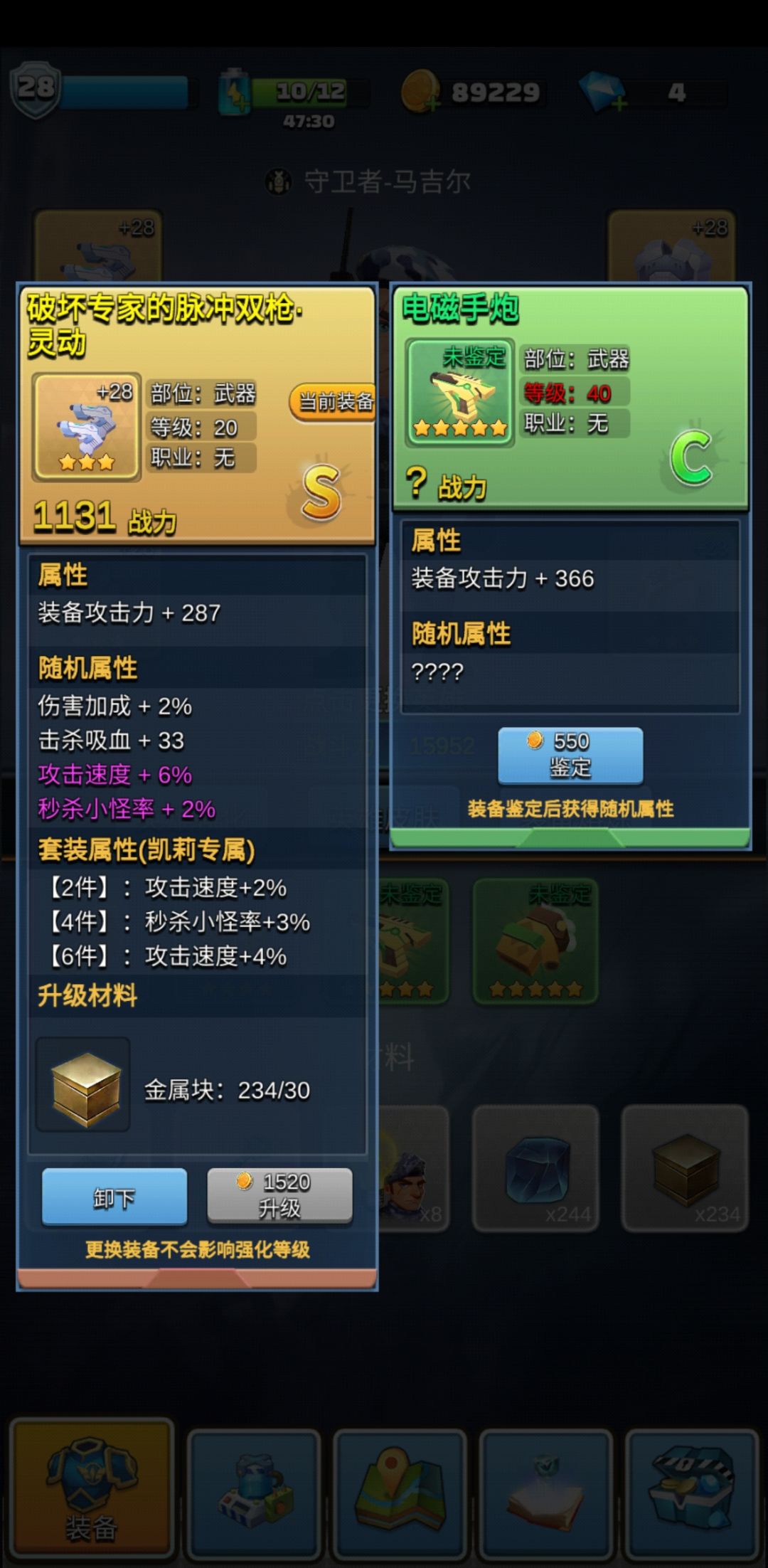 不知道再高一些的关卡会不会有几率出s和ss装备,目前看起来还不错