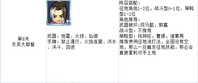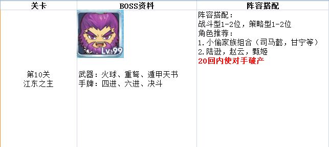 本关难度中上,但有很高的翻车率,原因是赤壁地图一旦主力被传送至对岸,则容易造成在有限回合无法输出的窘境。不推荐单纯的策略流或战斗流,最好选用策略战斗双管齐下的队伍阵容。由于真孙权的国富民强技能,最好能让他去对岸,这样有利于拉大发育差距。还要注意不要被他背刺,如果能用小偷家族其他成员背刺他的话胜率将大大增加。