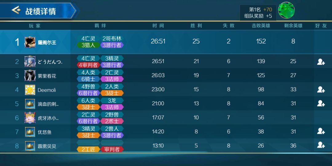 莫名吃鸡系列 五亡灵,三精灵,三潜行,三猎人,三哥布林,两术士,本来是六猎的 来了个灵剑 看法师挺多就临时改了的