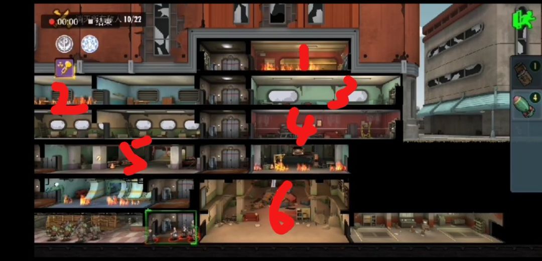 推荐阵容:凯特(为了及时打断大招,是不可多得的带控的坦克),李医生(清除在拿到辐射药剂前的辐射),尼克(第一辅助),长老(可替代,群攻伤害),萨拉(人手标配)。1.先去1号房间或者2号房间拿清辐射药剂,房间中带火毒,英雄们会损伤一些生命值