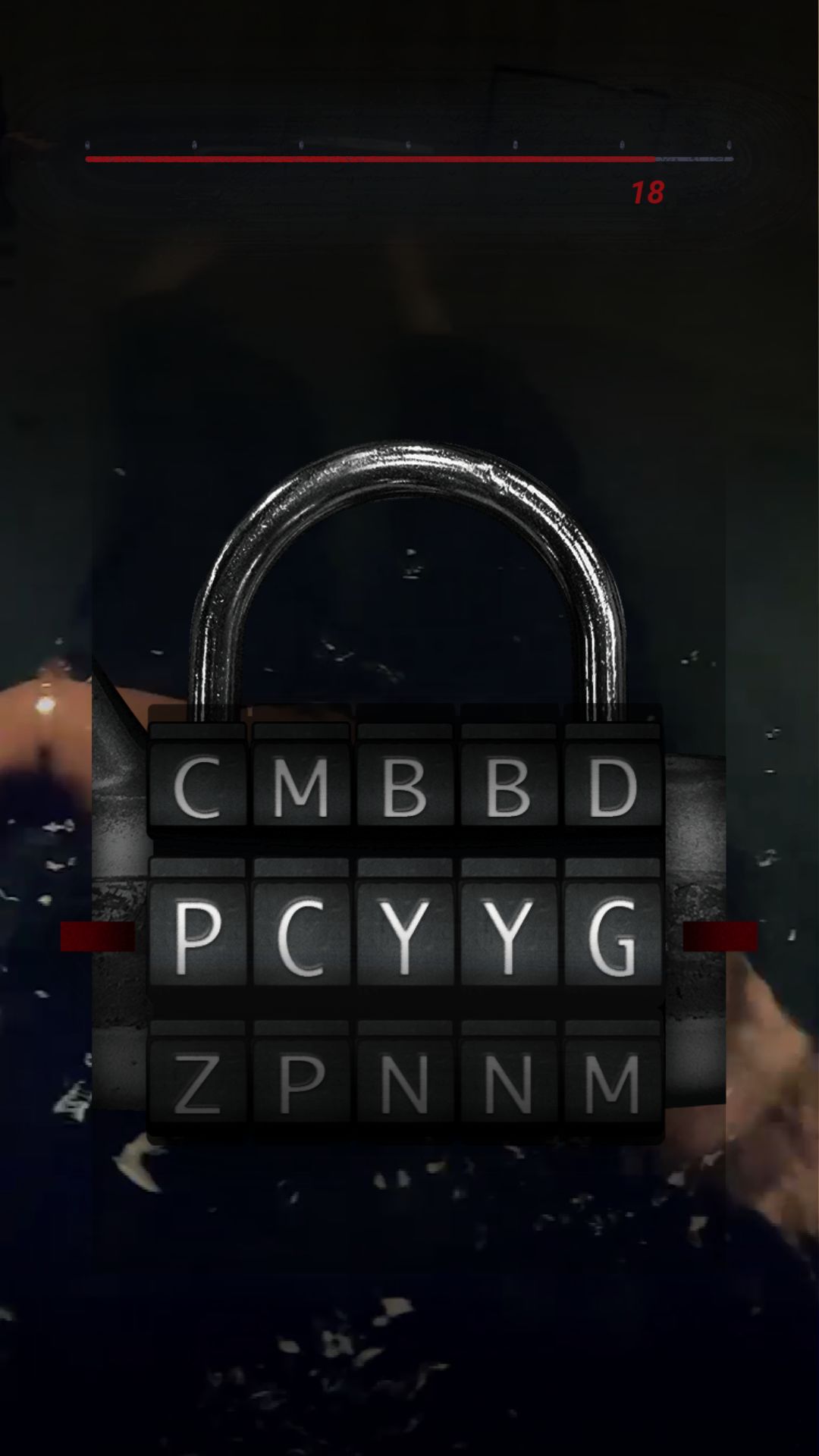 一进入游戏,主角就危在旦夕,面前这个锁需要输入一个五位的密码,刚才cg里面唯一一个五个字母组成的单词是Nancy。转出这个单词,锁被打开了。