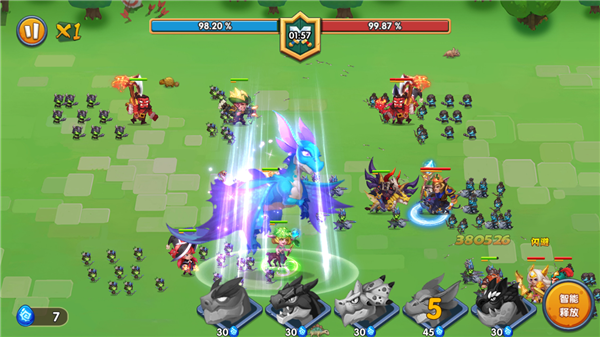 要想副本刷的好,小小巨龙不能少!游戏内除了有近40个独特人设的英雄可供选择之外,还有10条又凶又萌的巨龙等你驯服!通关一定副本后即可驯服巨龙,驯服后就可以带着他们上阵作战了。他们除了有霸气的外表,属性方面也不容小觑!例如龙族中最美的仙女龙,不仅特效华丽,更重要的是她可以帮助我方英雄大幅提升攻击力。更别提其他可以召唤、给盾、治疗等等技能各异的巨龙了,统统等着你!