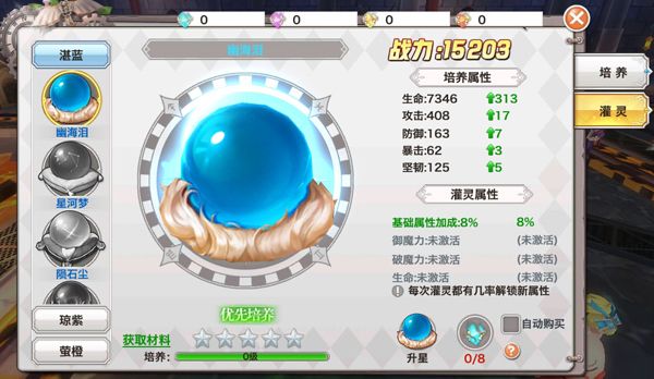 通过对已激活魔球灌灵,可激活并提升属性。最新获得的魔球默认为“优先培养”,可在魔球模型下方按钮选择优先培养魔球。