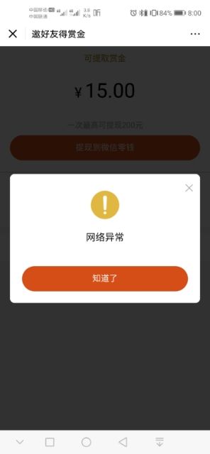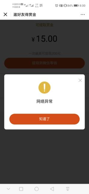 邀请给的红包怎么领去不了一领取就显示网络异常 你们能领取么?