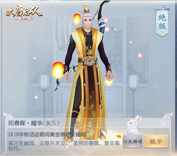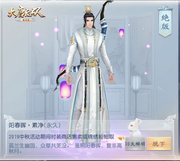 中秋佳节期间,无双商店里还将出售全新的主题外观,点缀起花好月圆夜的最美时光。同时,锦绣轮大抽奖也将欢乐登台,除了有机会抽取到“阳春晖·素净”与“高秋月·素净”两款绝版时装外,大抽奖还为玩家们带来特别定制的“耀华”款中秋绝版时装“阳春晖·耀华”与“高秋月·耀华”。另外还有“晨光·蝶影”、“夕雾·夜语”两只绝世神鹿坐骑,快来试试手气喜提时装与坐骑,据说会华丽到亮瞎氪金眼哦!