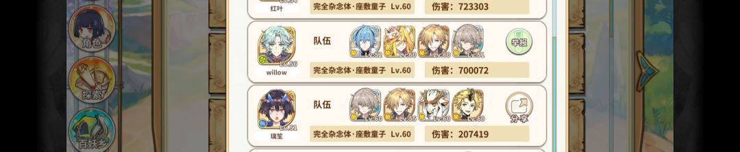 上面是别的玩家,下边是我,这里鸟突破了一次,土蜘蛛和角端都是两次.3个满级,法器两金。