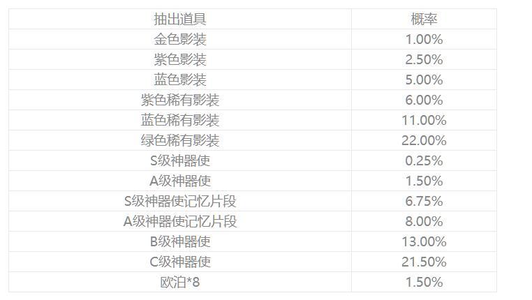 4.精选专场相比原记忆隙间,各个等级物品的出现概率无变动。