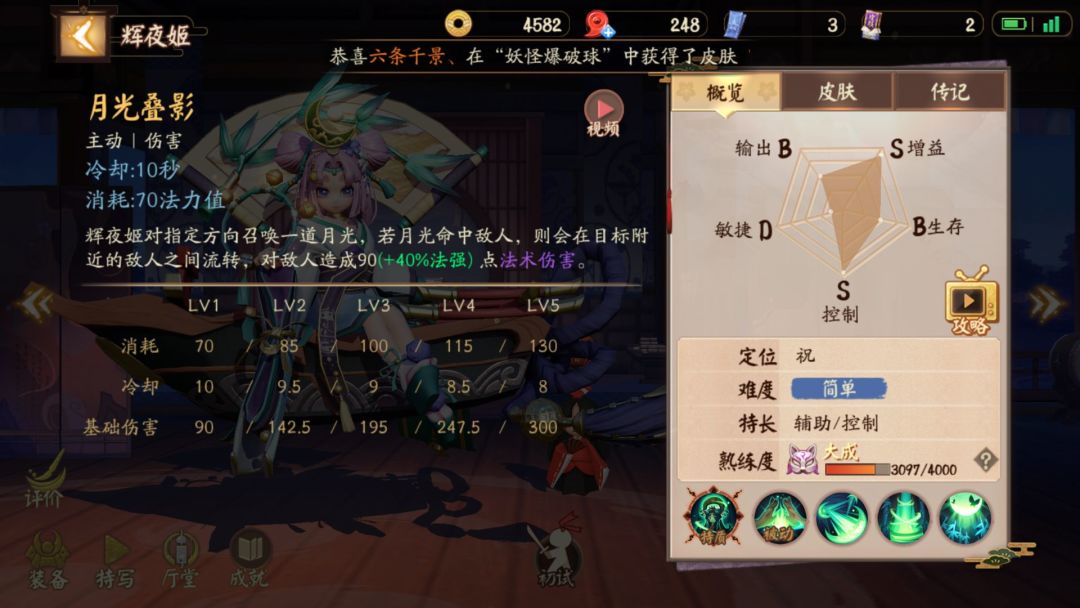 辉夜姬在指定位置召唤竹林幻影,令范围内触碰到竹林的敌人眩晕1秒。