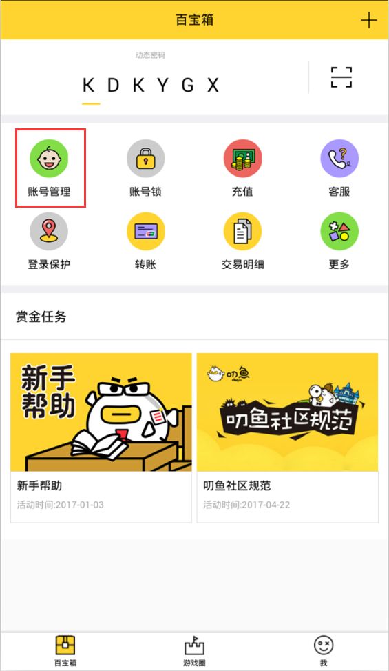 ② 注册并登录后,点击叨鱼主界面的“账号管理”按钮,如下图所示。