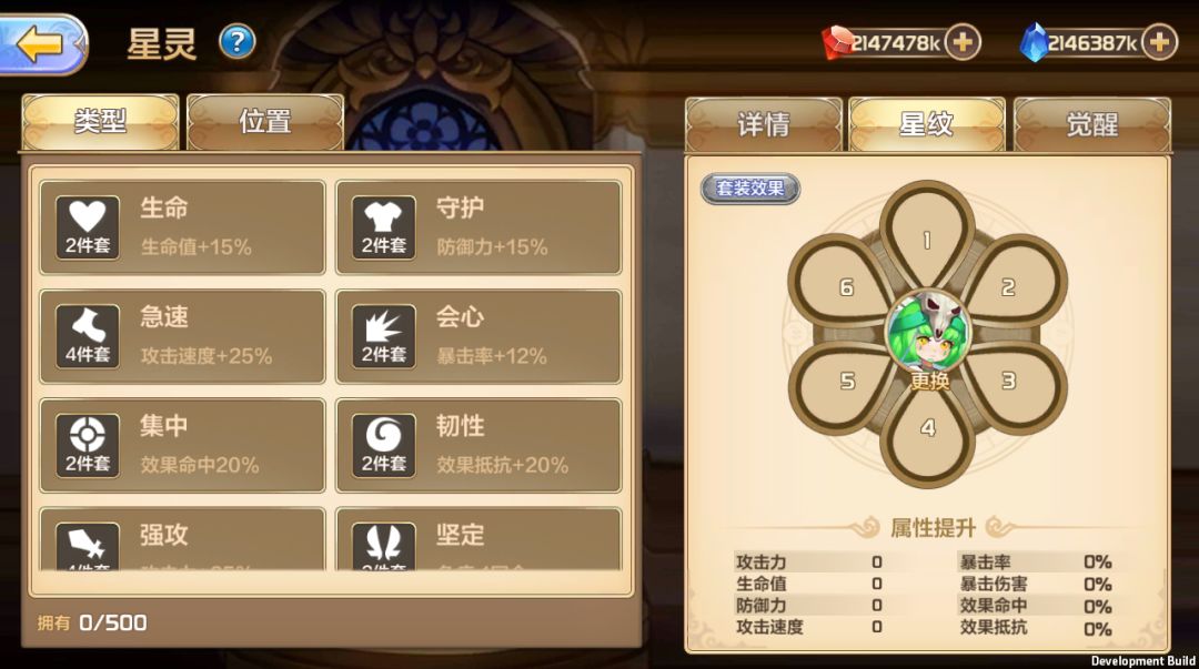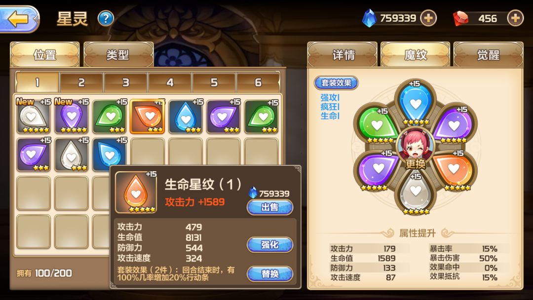 对于星纹的分类,作了两种选择方式,除了常规的按类型选择之外,还增加了按位置选择,分开1~6号位,自动按星级排序,以多格子、大界面形式展现。整体浏览更加直观,挑选更加方便!相较于旧版本的长条形来说,人性化了很多有木有!!ヾ(°∀°ゞ)