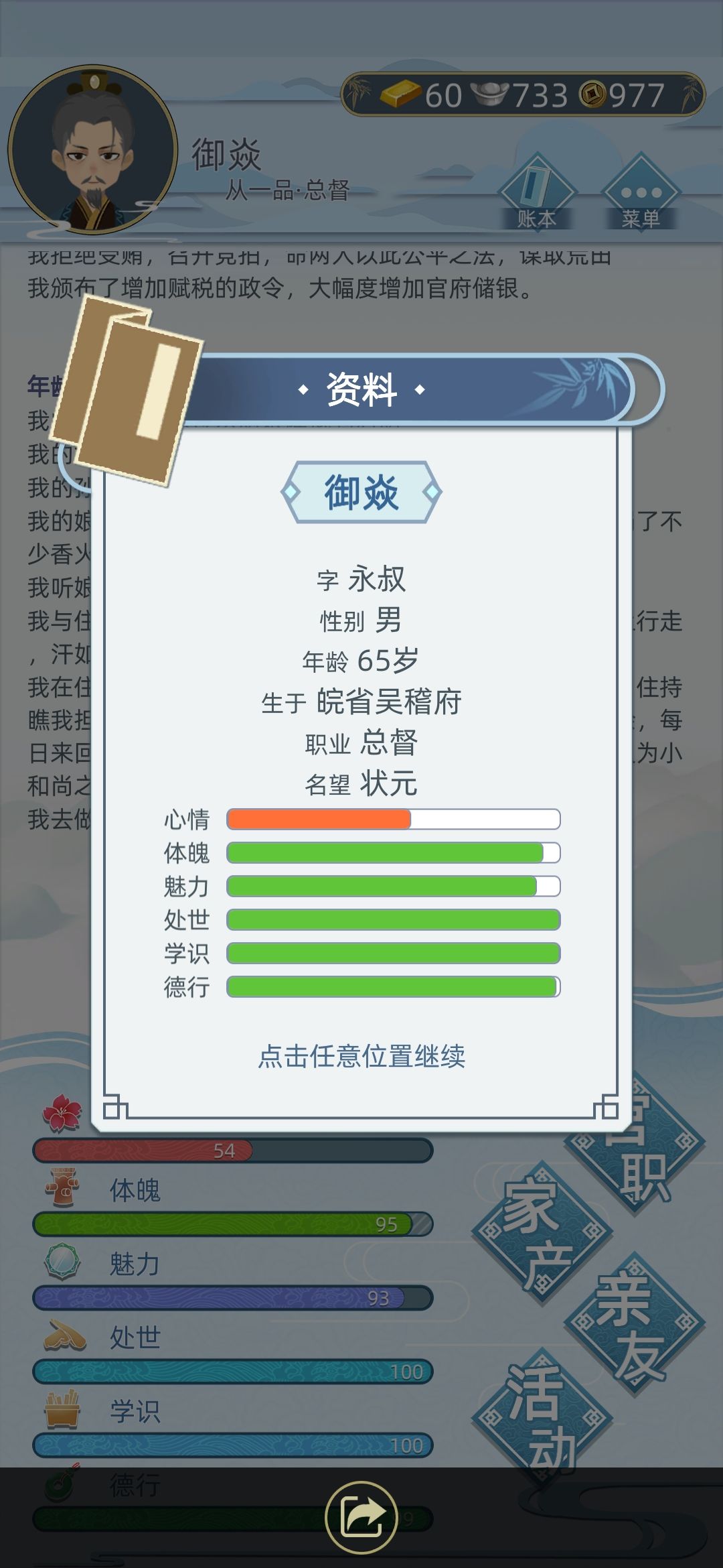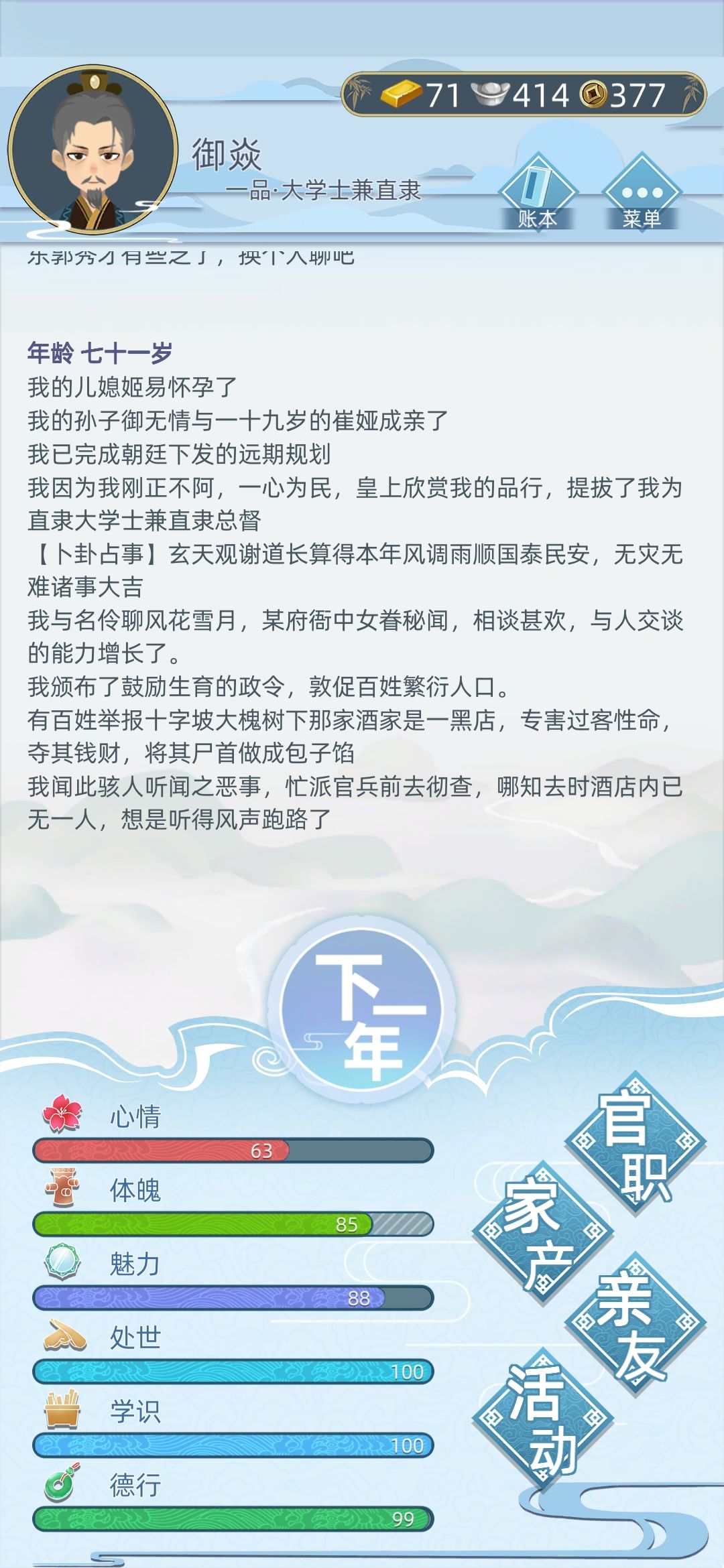 《古代人生》试玩出的基本路线、玩法介绍(个人心得)(一品大学士)