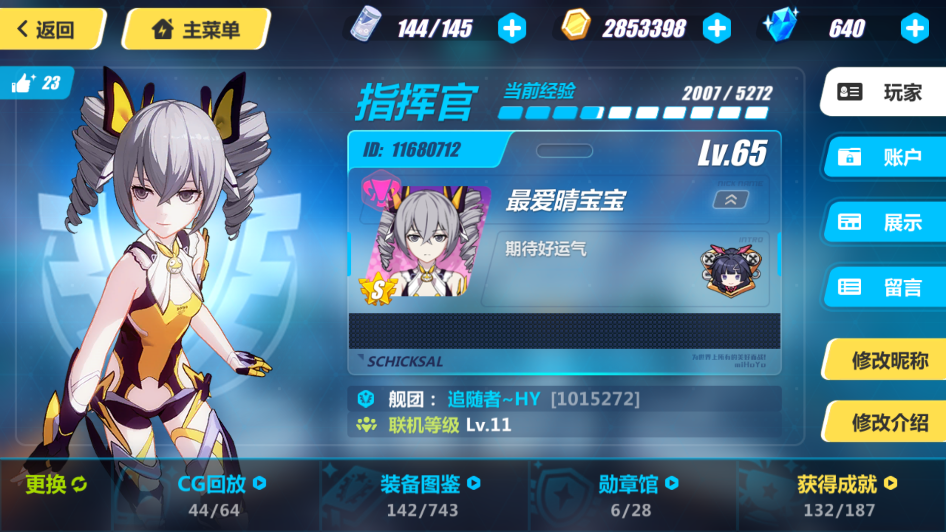 我应该算是一个崩坏咸鱼了,从崩坏3封测到1.9断断续续的玩到了现在。加上不肝的原因,等级才65级的超级咸鱼!
