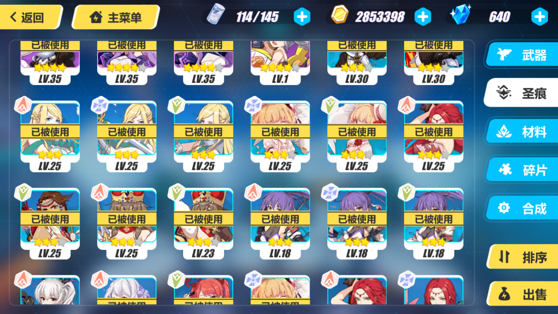 从建号到现在应该有37次十连了,每次都是保底,没错全部保底!!初始抽到的唯一的s级女武神是次元,接下来直接把游侠山吹生八生生的抽到s。为了养阵容肝巫女,直到2s也没抽出一把刀来。mmp!