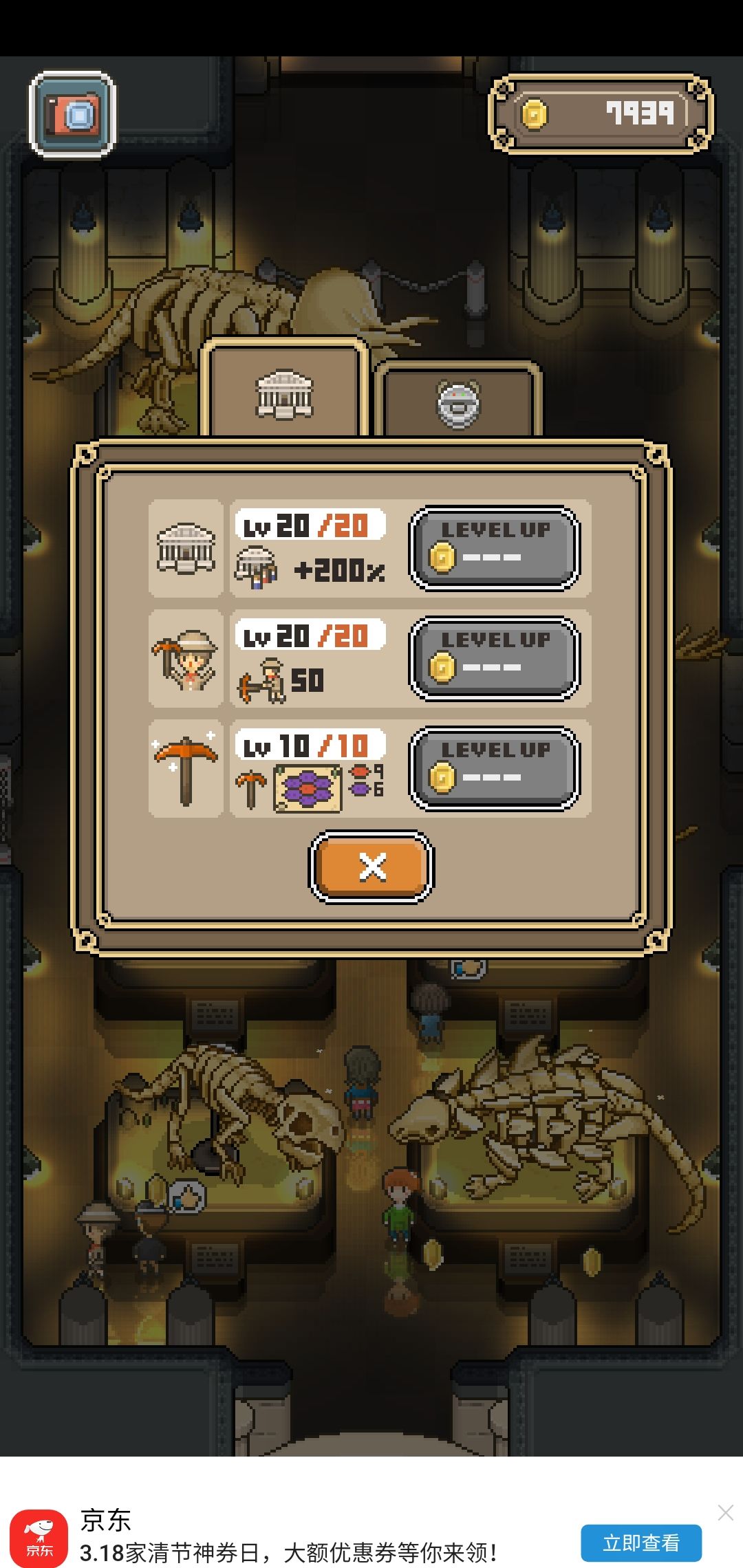 分屏前台挂机就行,挂着游戏看小说看视频之类的,主要升一技能赚钱挺快的,两分钟就有5千以上金币,挖化石的时候随心点就行,完全看运气。。。
