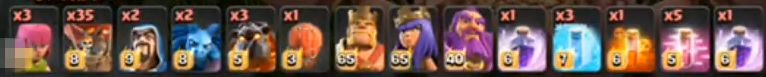 建议带3狗和35球,这里为何要带3狗而不是4狗呢?主要是因为狗的作用只是抵挡防空火箭的伤害,虽然血量高,但没有实质的伤害,而气球呢,3个就可以一轮轰炸掉一个防空塔,而防空塔只是单体攻击,要打掉一个气球需要放好几发火箭。那么狗的空间是30,而气球只要5,多6个气球比1只狗划算得多,所以不管是暴力狗球也好,还是天女狗球也好,永远都是多带球更划算。法术方面双狂暴法术、3个冰冻法术、5个加速法术。暴力狗球比较适合用加速来快速推进,狂暴法术只用在往大本营方向推进即可。