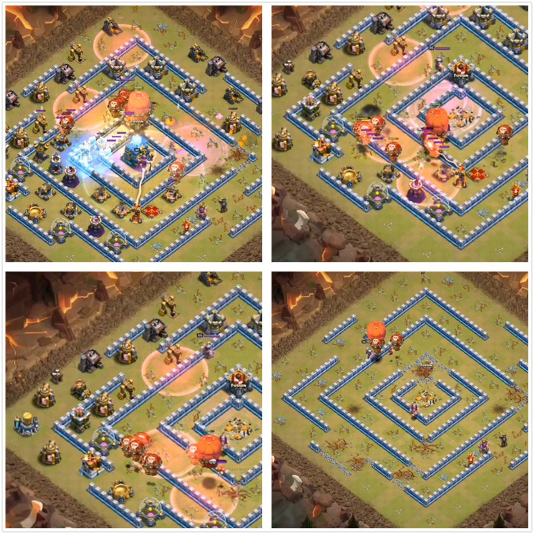 总结: “暴力狗球”的打法是非常适合打这种回字阵型的,并且只要满足单防空在外,女王可以打到,基本上都可以用这种打法来解决。希望今天的教学对首领们有所帮助!有不明白的地方可以回帖询问哦!