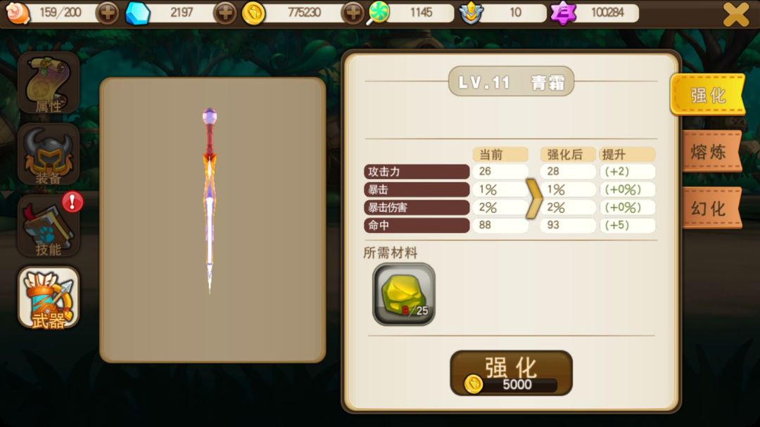 技能升级用的资源和武器是相同的,还可以通过探险里面的矿场获得,武器熔炼等级会更新新的技能,所以推荐先弄武器,等技能全部开启在选择升级。
