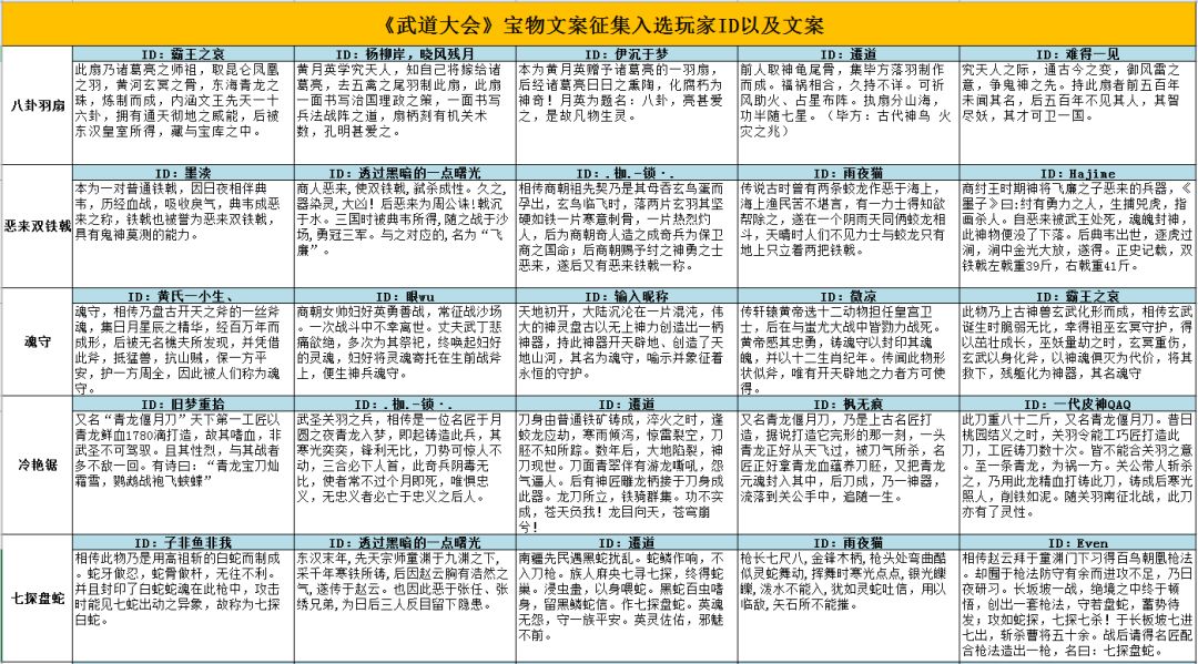 【最终入选名单公布】《汉末霸业》武道大会宝物文案征集,入选玩家ID以及文案公布!