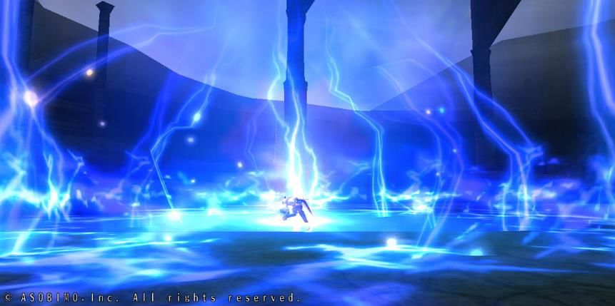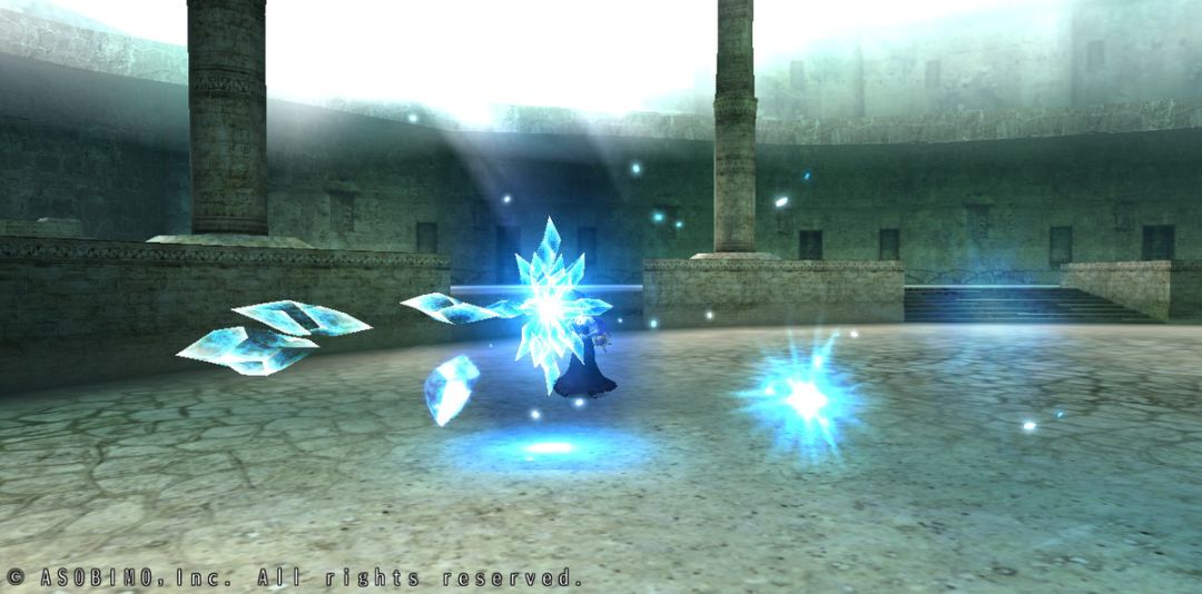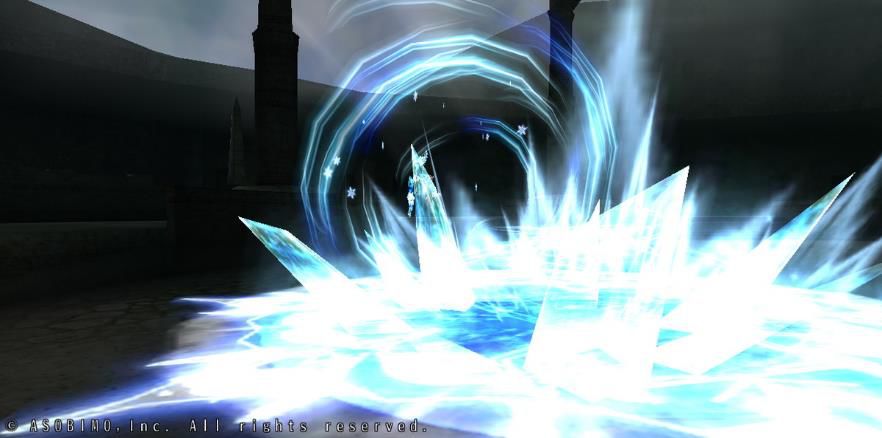 向前方扇形区域连射出冰之箭矢。并且从空中唤出巨大冰箭击向地面,冻住周围一切。