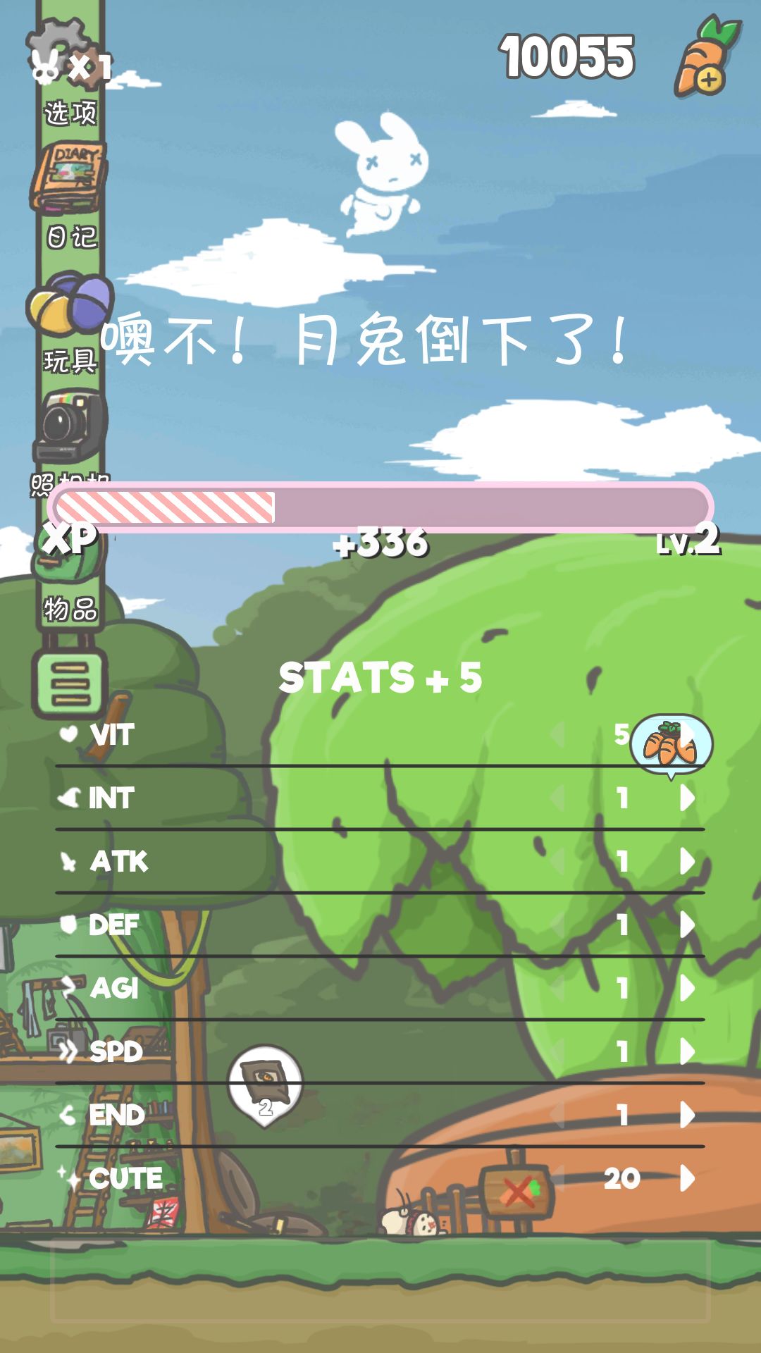 我不知道别人这么做的,但是我的兔兔倒下后,我让他去放肥料,他就又爬了起来23333。(这到底是什么执念。。)然后再次重开兔兔就好了。(不过,好像还会再次倒下,毕竟锄头还在诅咒)还有我想问一下琪琪为什么我买了书给了她,她又问我要?