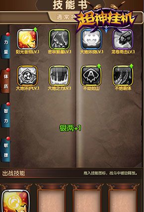 《超神挂机》中技能分为力量、体质、智力和敏捷四个方向。每个方向分别为6个主动技能和2个被动技能。