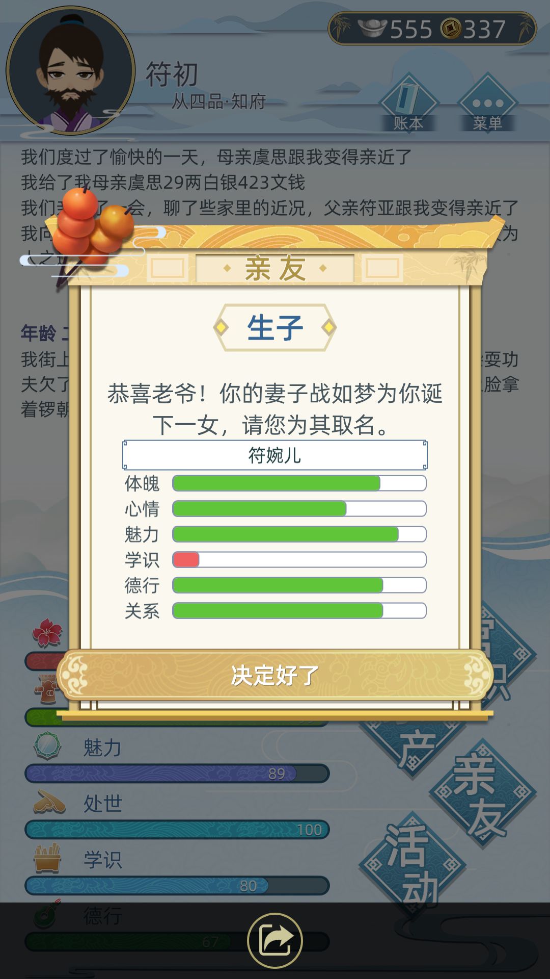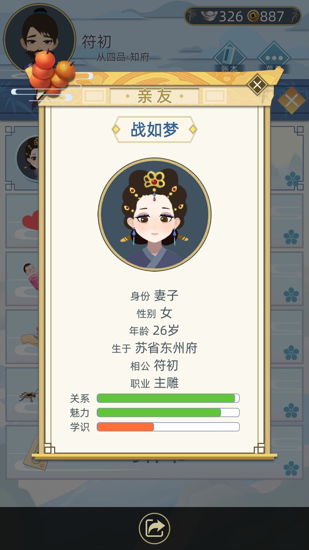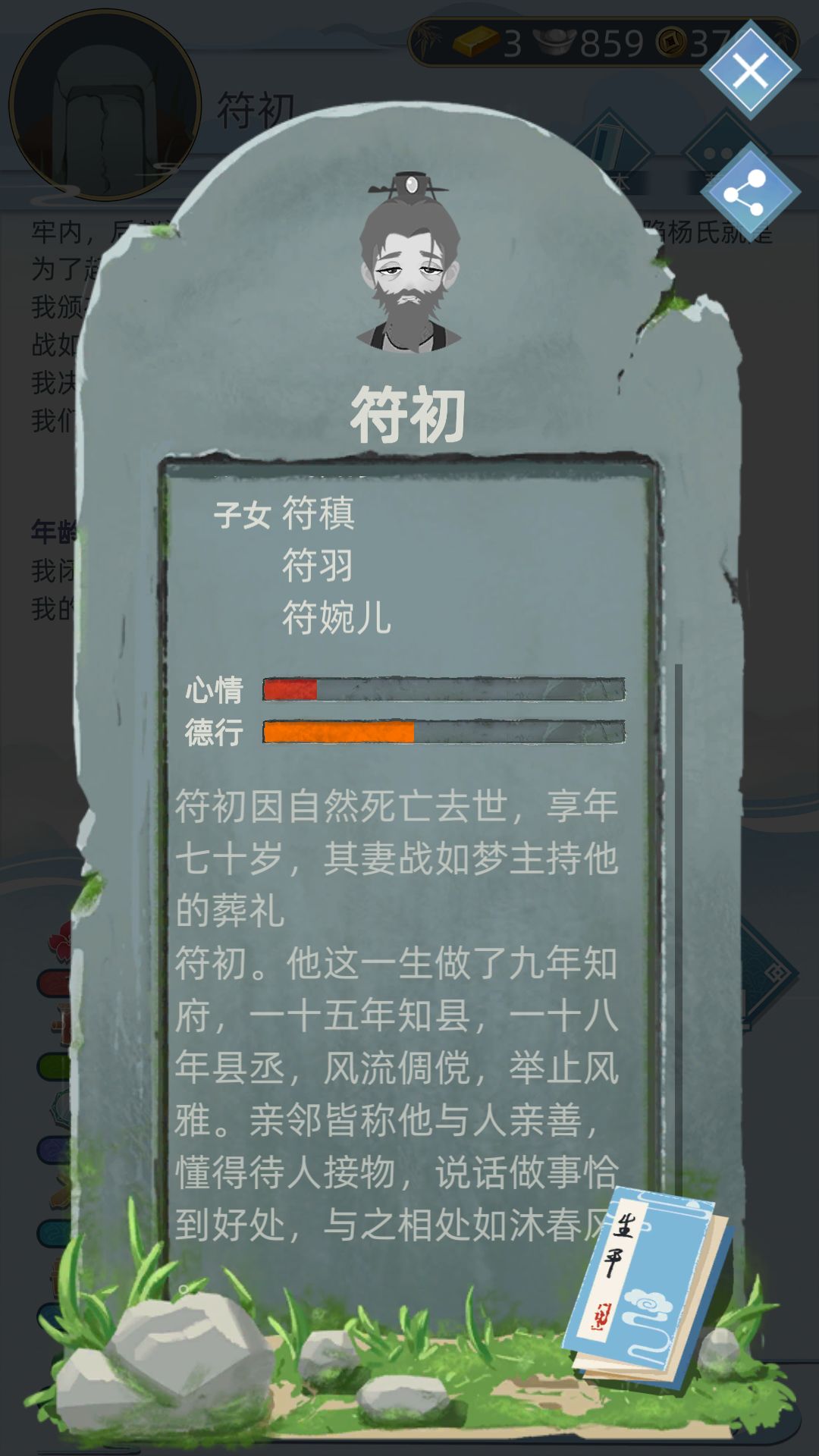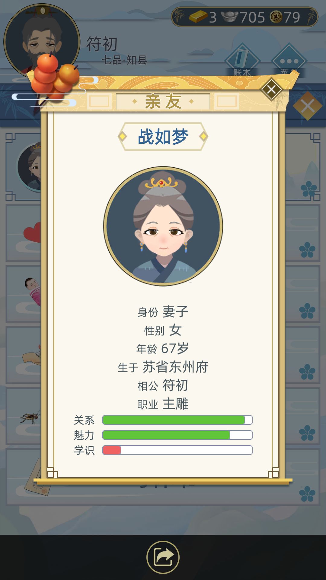 然后我挂了,如果妻子比我先死我可能会比较悲伤(ps:哈哈哈哈,一个游戏还这么多愁善感),挺好的,虽然没当啥很大的官,但是我觉得最重要的就是家庭吧,我很爱我的家庭的。