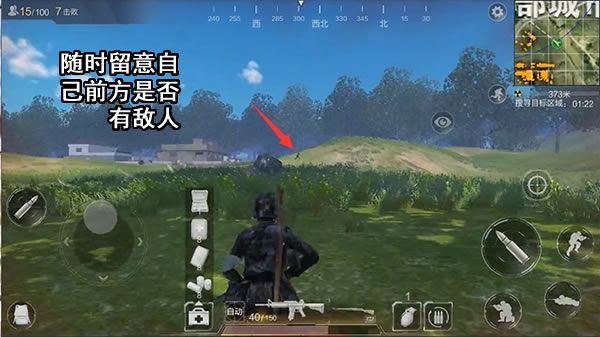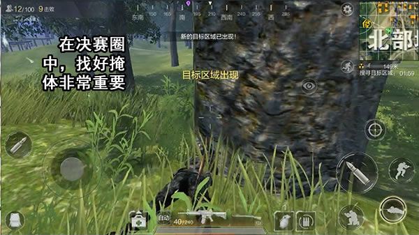 4、进入安全区位置选择优先级一般为:高地、背坡、石头、树、房子。优先进圈抢占掩体,留意四周环境,判断哪些方向可能有人出现,哪些方向对自身有威胁,如果遭到敌人射击,撤离的路线在哪里等等,这类问题考虑周全后就可以蹲守埋伏后续进圈的人。借助掩体掩护时,并不是一动不动盯着前方就是最好的,要知道,掩体的正前方是敌人的视野盲区,敌人发现不了更没法开枪射击,此时该观察的是左右及后背方向。