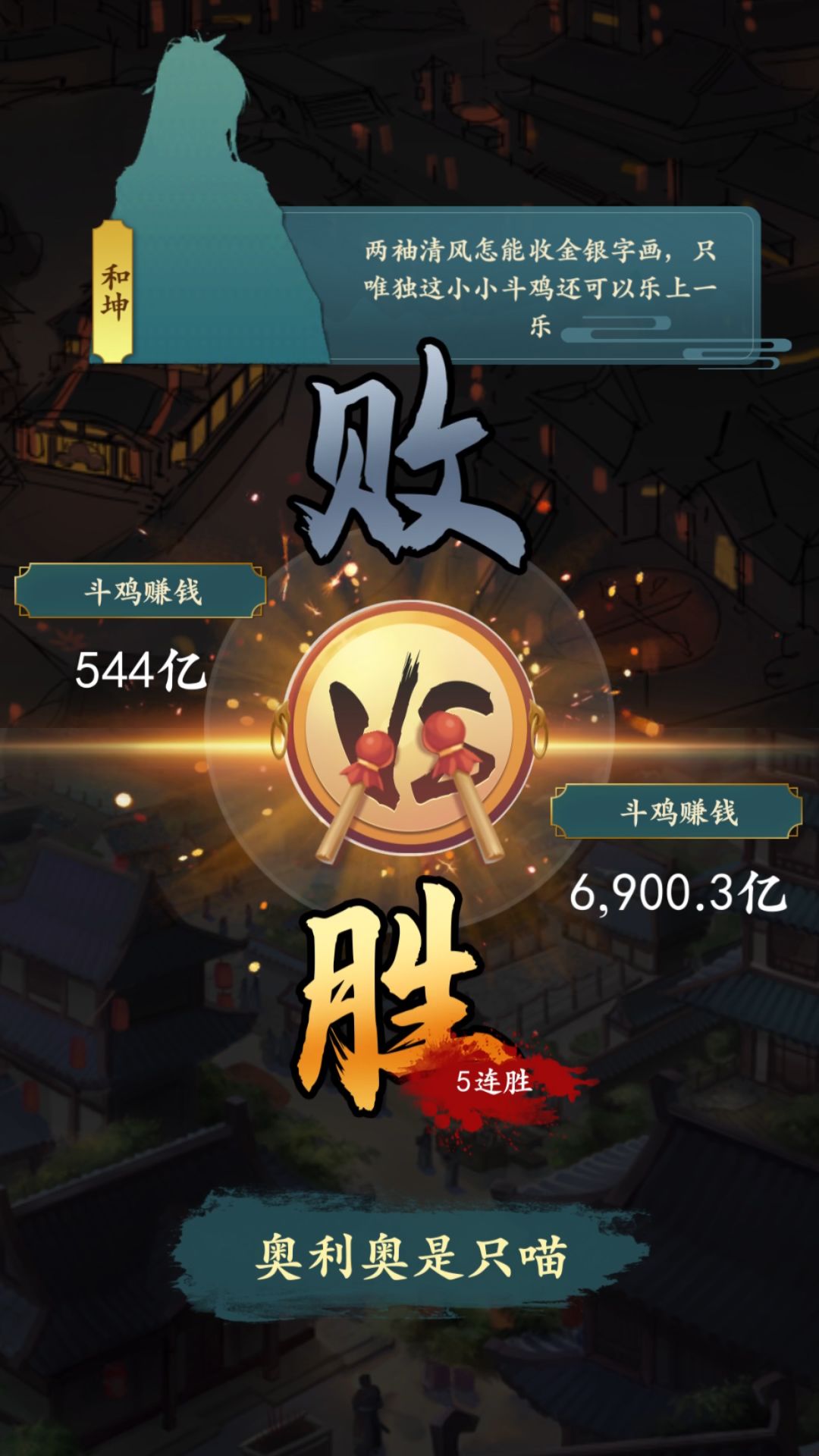 评价:总资产足够多的情况下,赢下和大人还是很容易的,基本上在500~600亿间,只要600亿以上能赢一次就能搞定,欧皇随意,酋长洗洗手多玩几次总是能赢一次的。。。