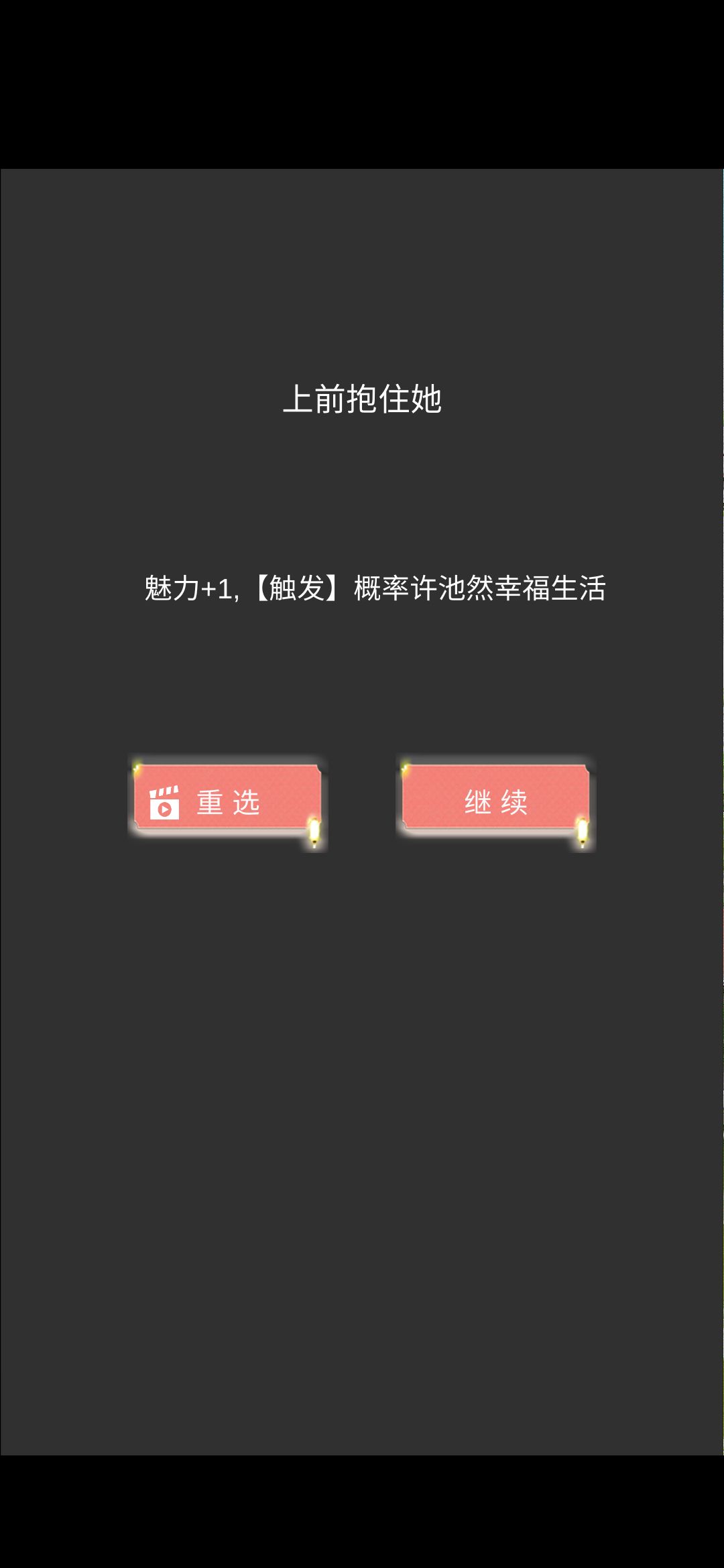 第一次选择后出现这个黑色背景的页面,我还以为我一来就选死了呢!可能是我看字比较快,看剧情的过程不断的用手在点击界面为了让它快一点,手都酸了才过了一点点!